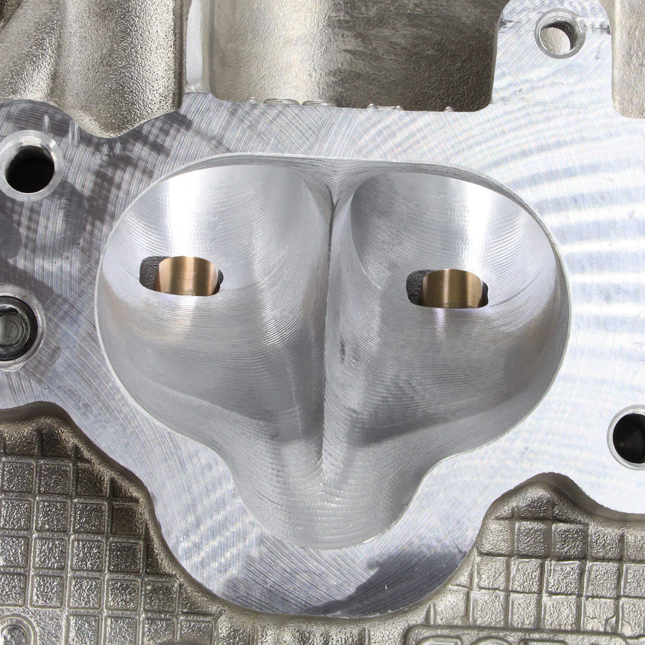Once the Centroid completes the port process the heads undergo a cam clearance machining process that removes material from the lifter area where large duration cam profiles are known to contact the castings. Shortly after the heads are drilled to fit larger 1/2" or 14mm head studs, which are commonly used in high horsepower builds.