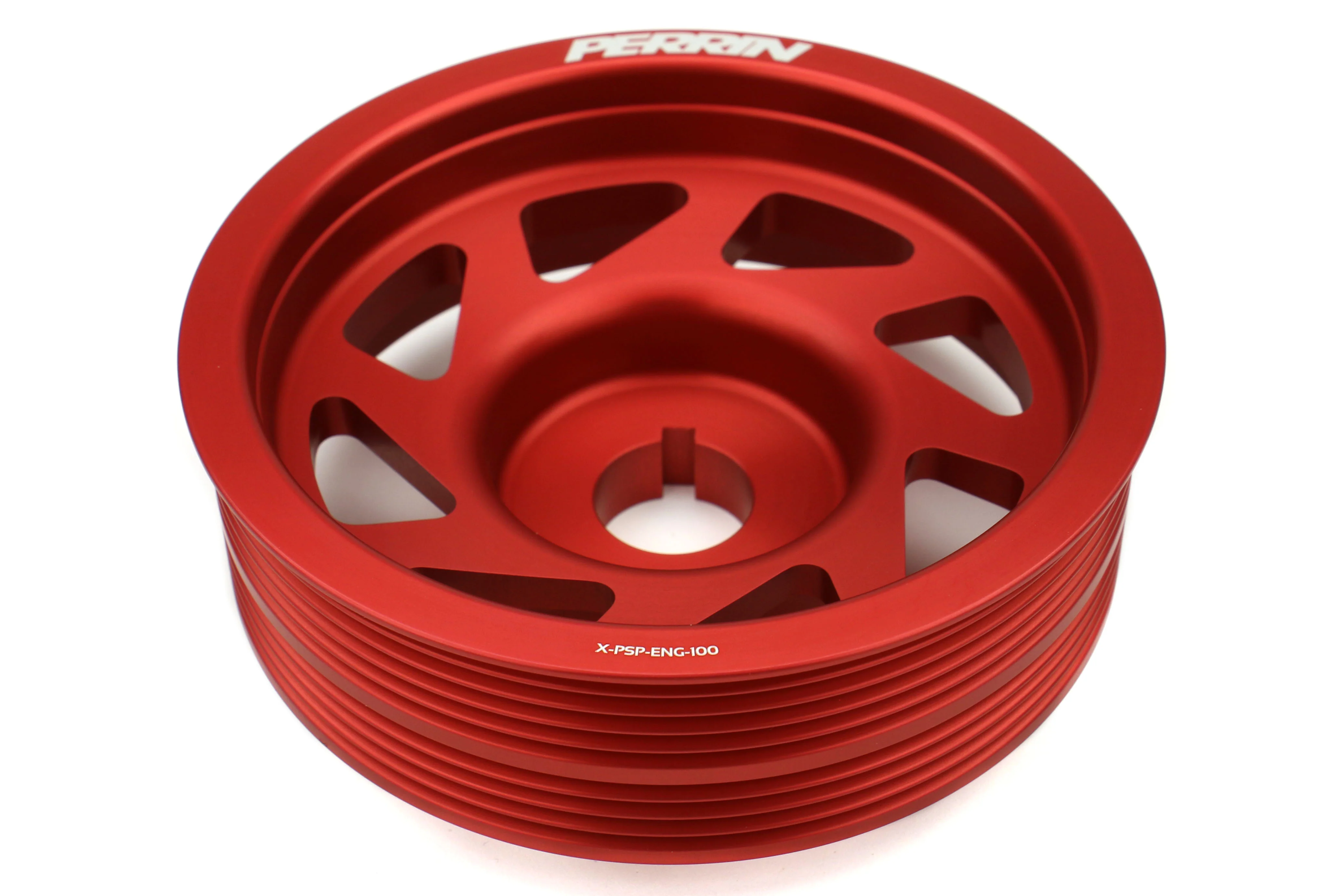The PERRIN Performance Lightweight Crank Pulley features lightweight billet aluminum construction to be a strong replacement for the factory crank pulley. The main purpose of this design is the overall lighter profile to reduce the rotational mass of your engine to promote faster revs, and better response, with increased performance.